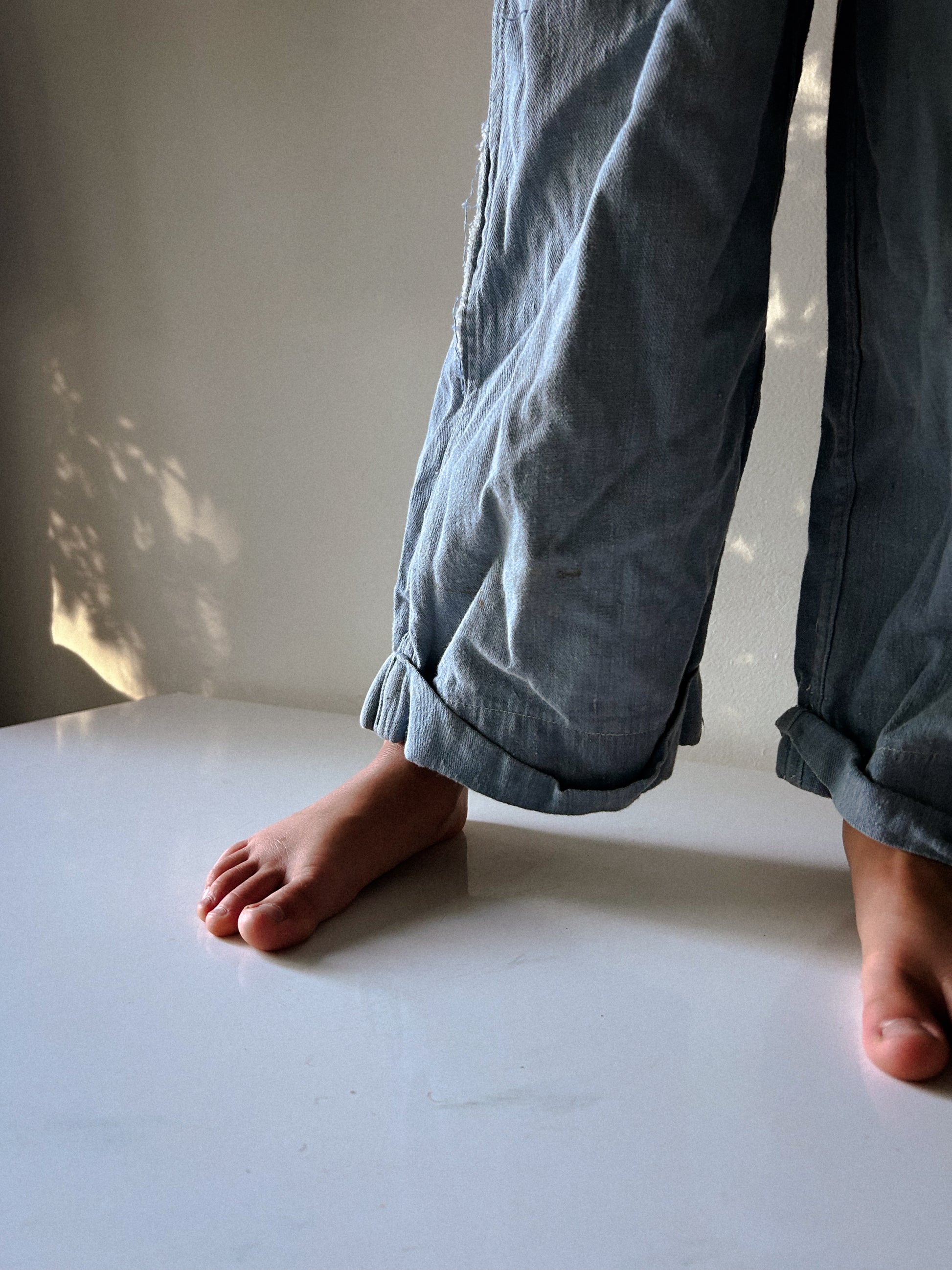60s cotton overalls l. Really cute soft and worn. Show signs of wear a couple marks but no holes. Love how easy these are