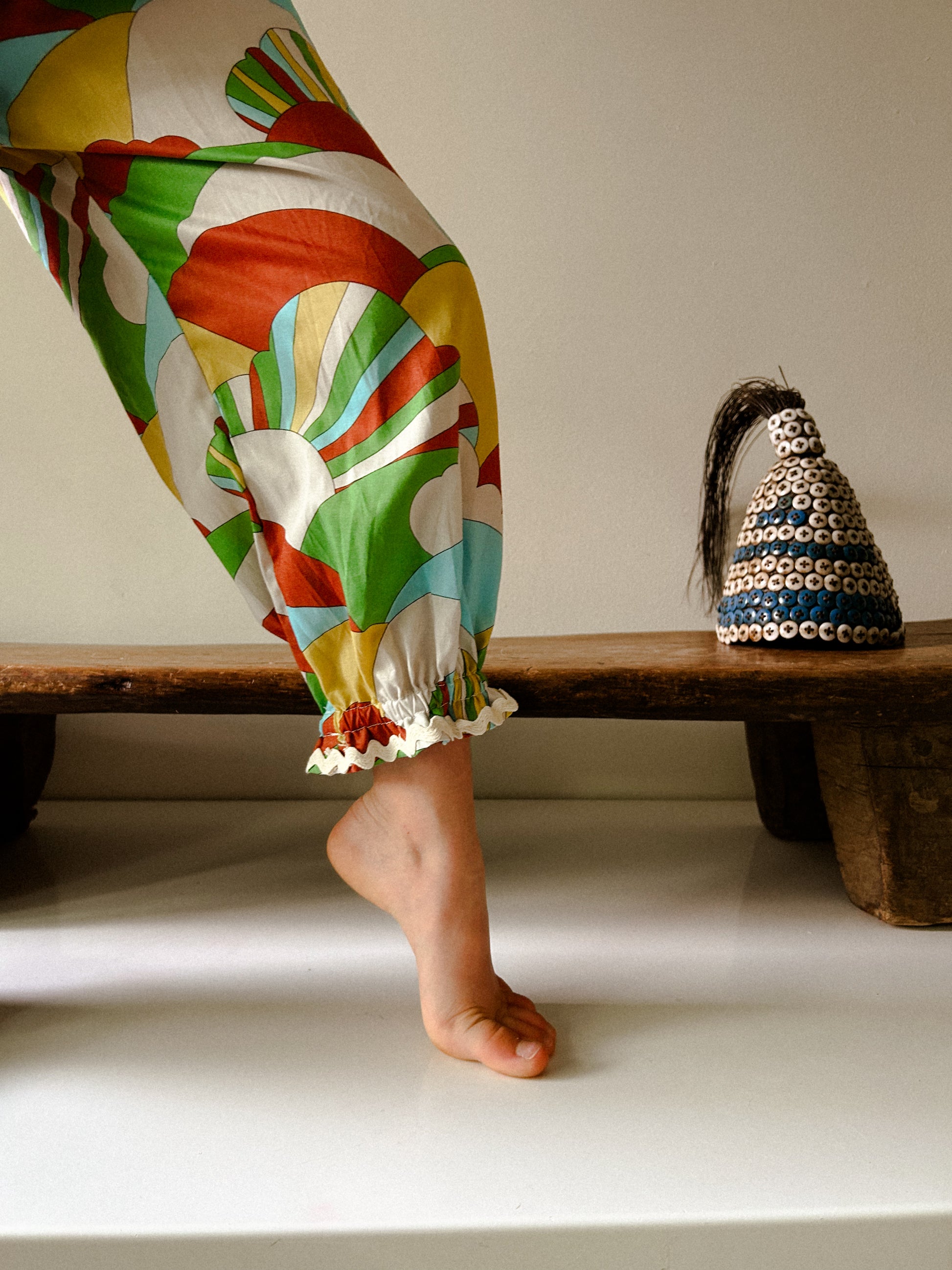 Our Ballet Pant and inspired by Edwardian underthings and 80’s loose fitting ballet warm ups! Cut from a bright and groovy lightweight Liberty Tana Cotton. Easy to layer with your favorite tops, sweatshirts, dresses or leotard. Featuring a paper bag waist, elastic ruffle ankles. Our ballet pants have an easy relaxed fit. Fit is true to size.