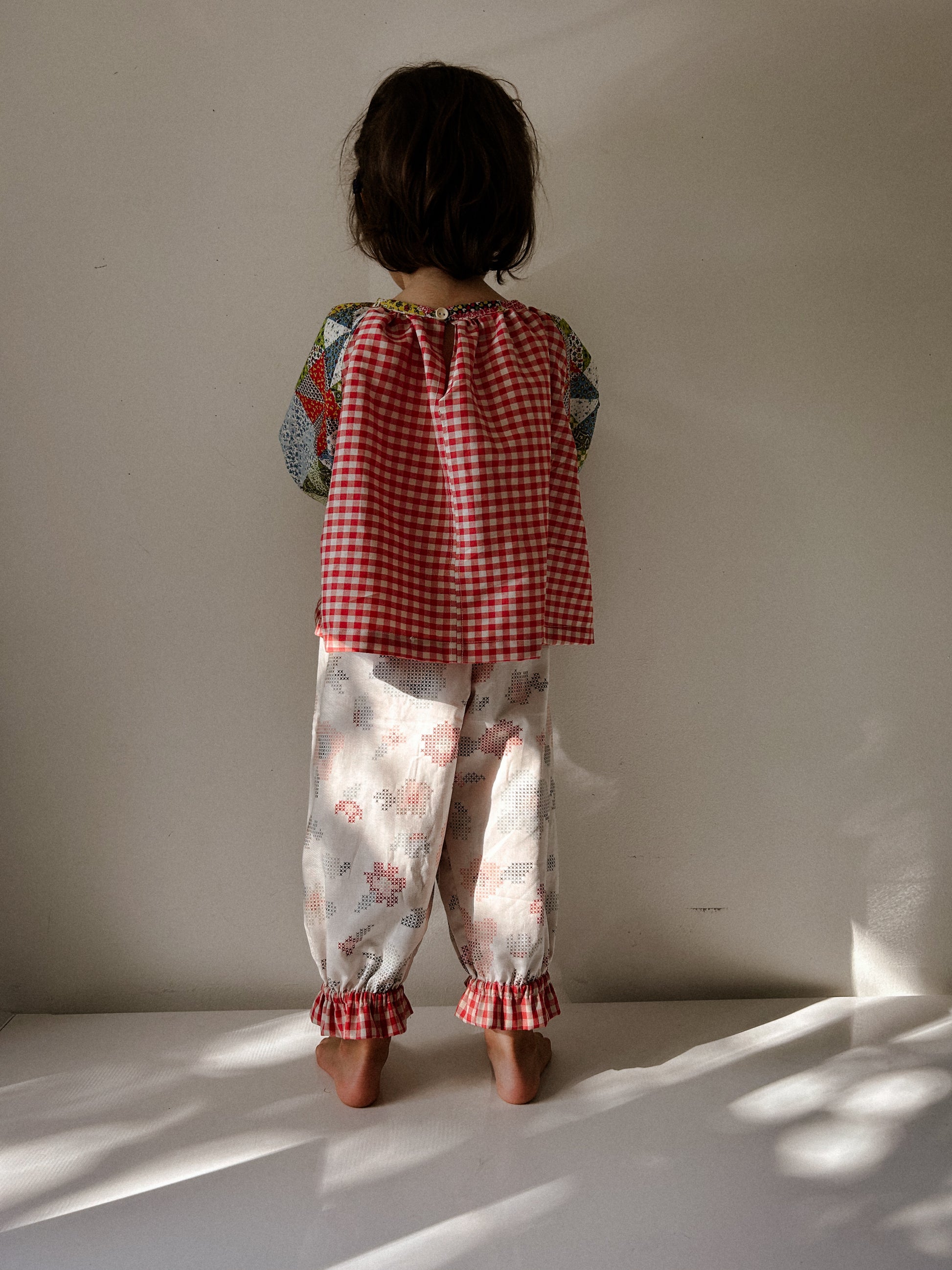 Our Ballet Pant and inspired by Edwardian underthings and 80’s loose fitting ballet warm ups! Made a warmer and reversible cut from a double layer of cotton. Easy to layer with your favorite tops, sweatshirts, dresses or leotard. Featuring a paper bag waist, elastic ruffle ankles. Our ballet pants have an easy relaxed fit. Fit is true to size.