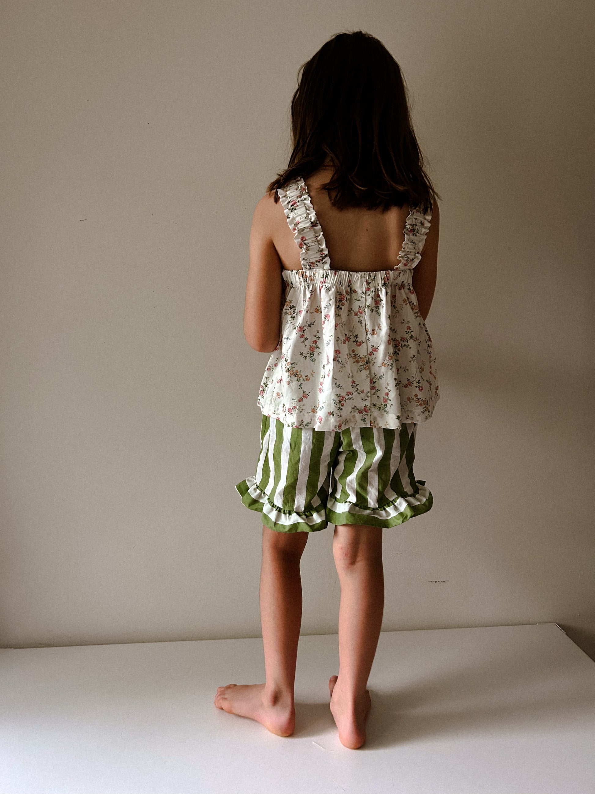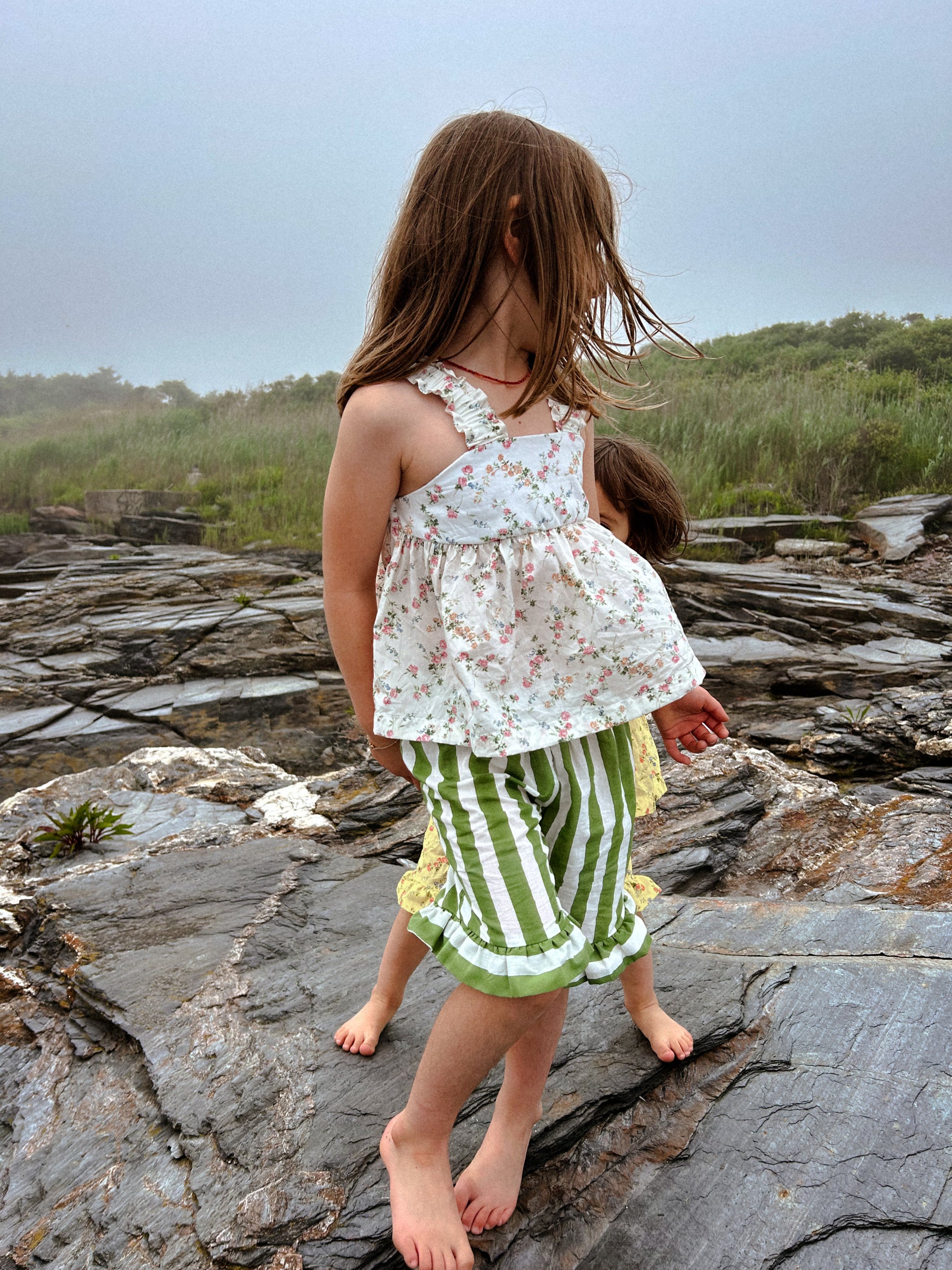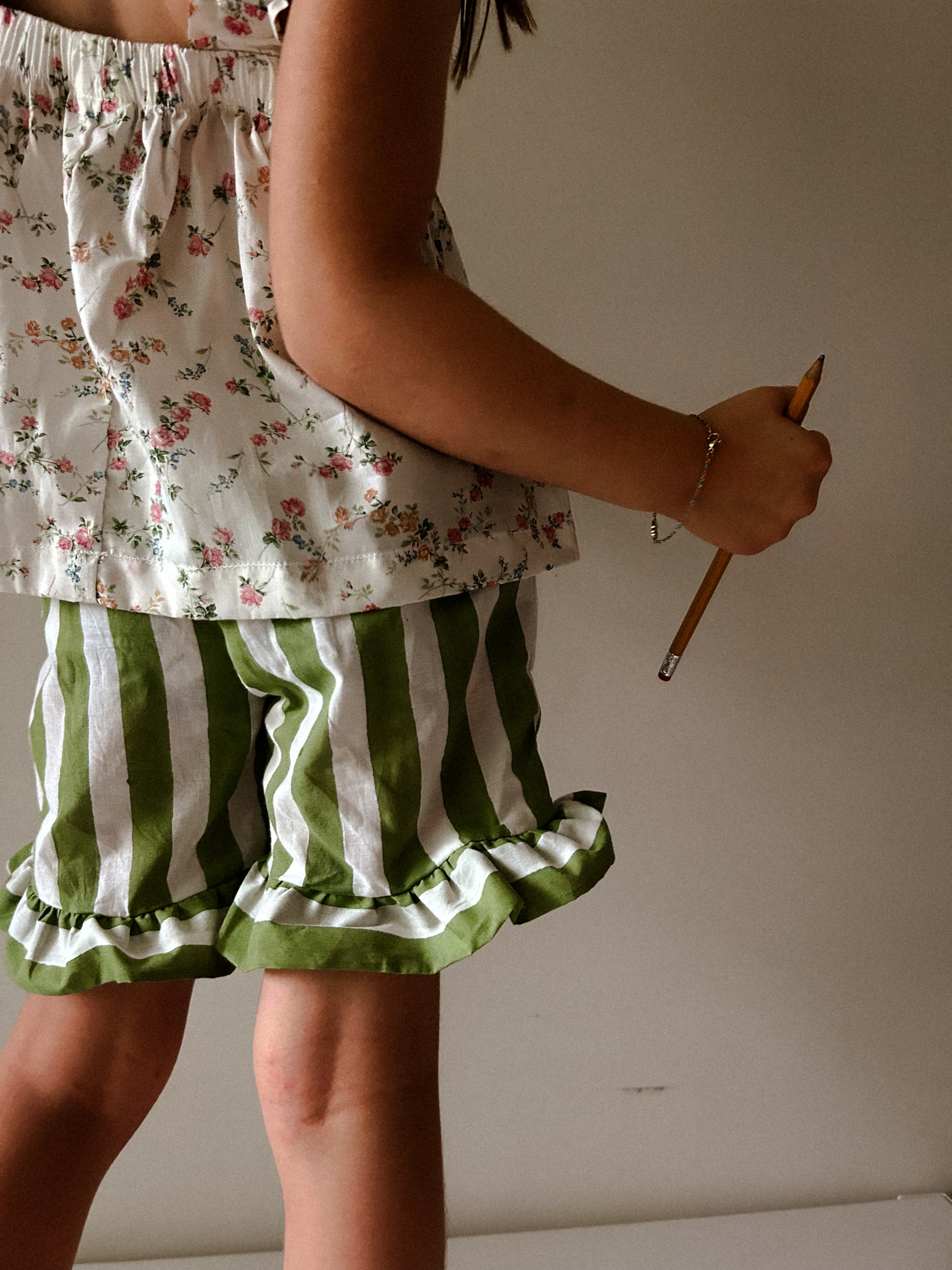 The Bay Short is the sister to our Bay Pant. is inspired Inspired by time spent on the Bay collecting shells. Designed for lounging with your favorite book, digging in the sand, with the perfect amount of ruffle for that festive occasion. Wear under your favorite dress or pair with our Bay Smock or Ballet Top.