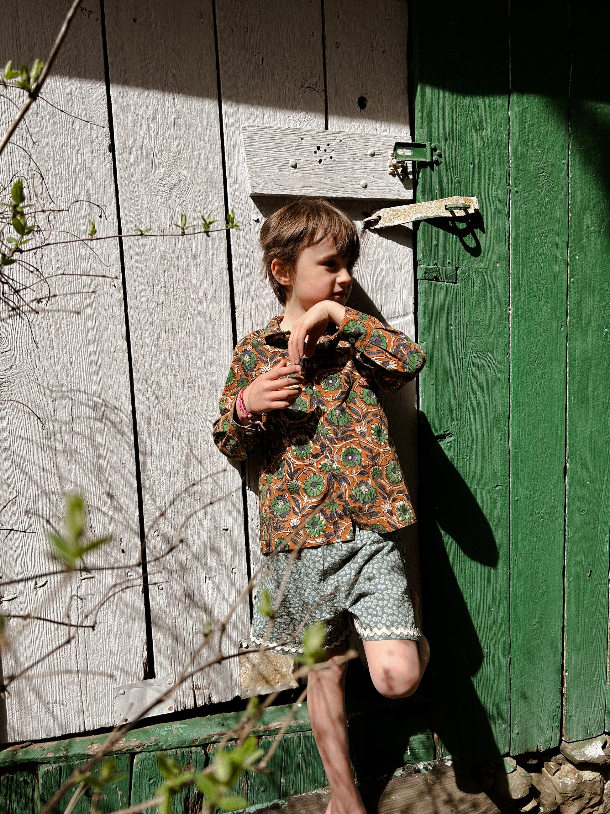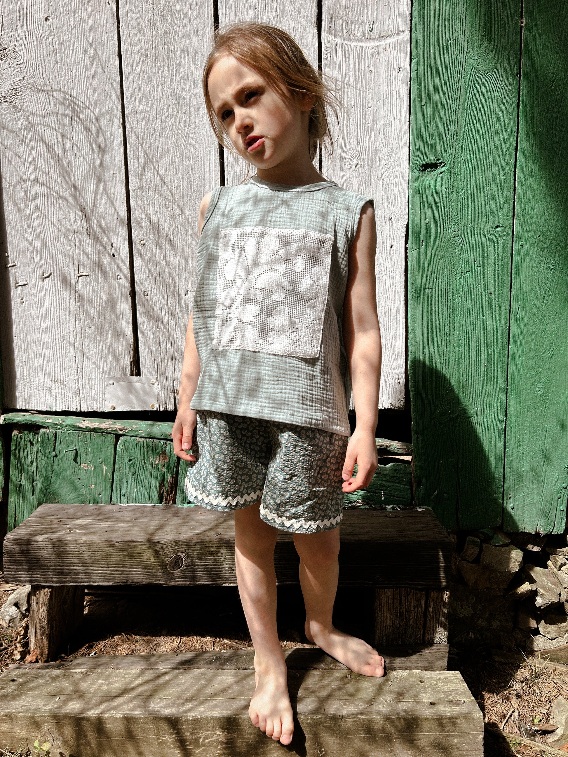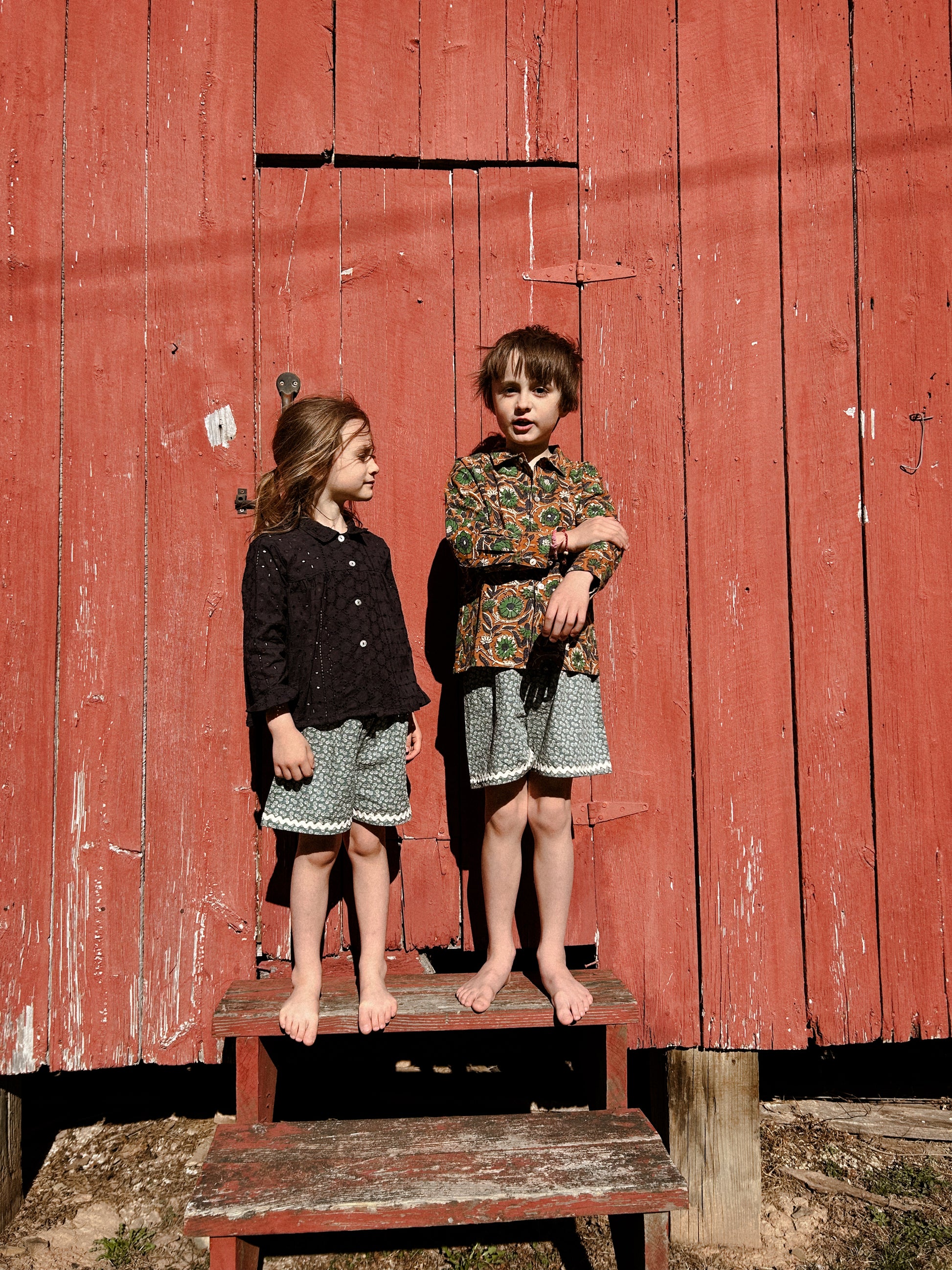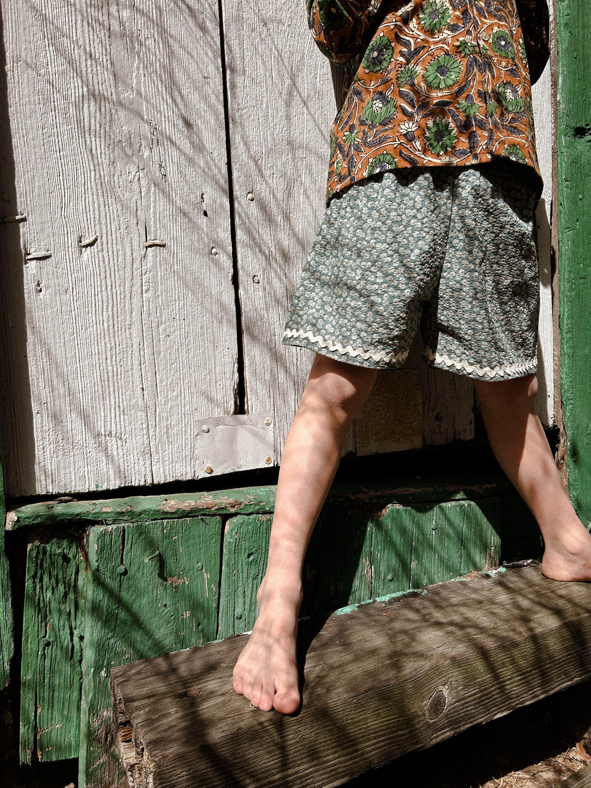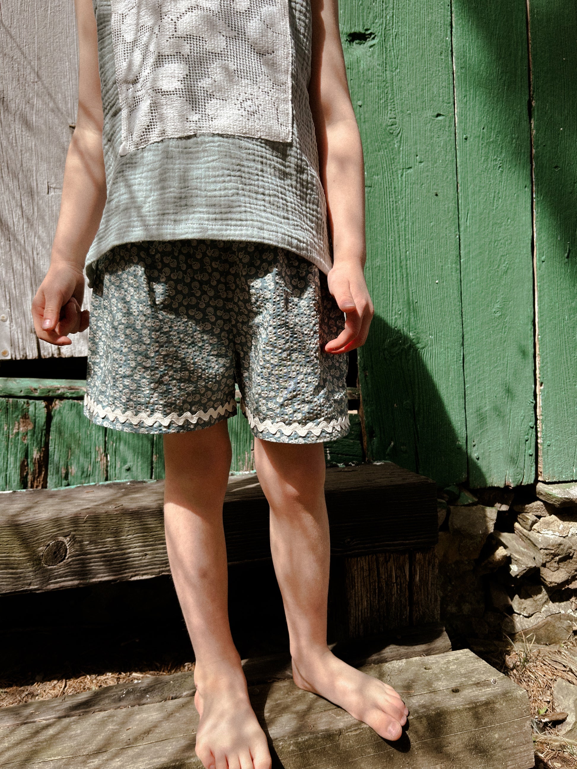 Designed to hit just above the knee and have a slightly sporty silhouette. Cut from a Japanese cotton seersucker with cotton rick rack trim. Featuring an elastic waistband and roomy fit to grow alongside your kiddo. Relaxed enough for every day but dressy enough for that special occasion!