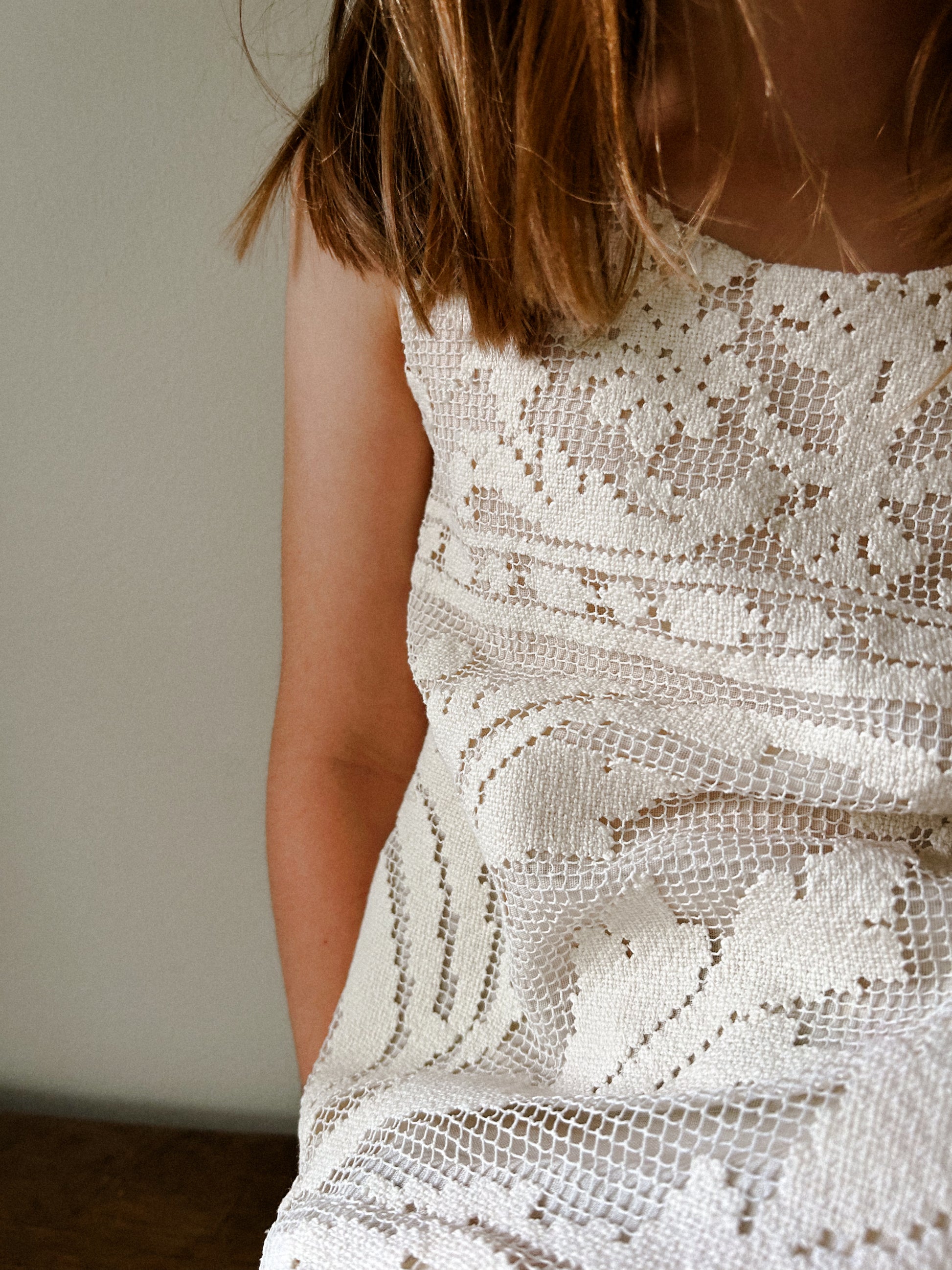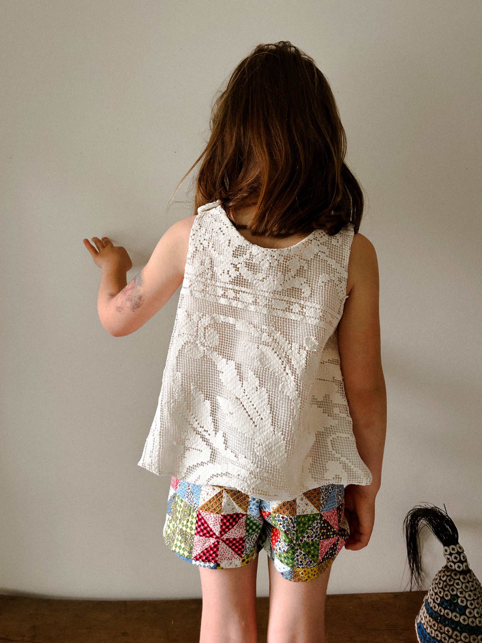 The Caracol Tank is inspired by shells and all things scalloped. A nod to 60s mod cuts. Cut from an antique cotton lace. Such a stunning summer texture! We love with our Canal Shorts, Bay Shorts and Ballet Pants!