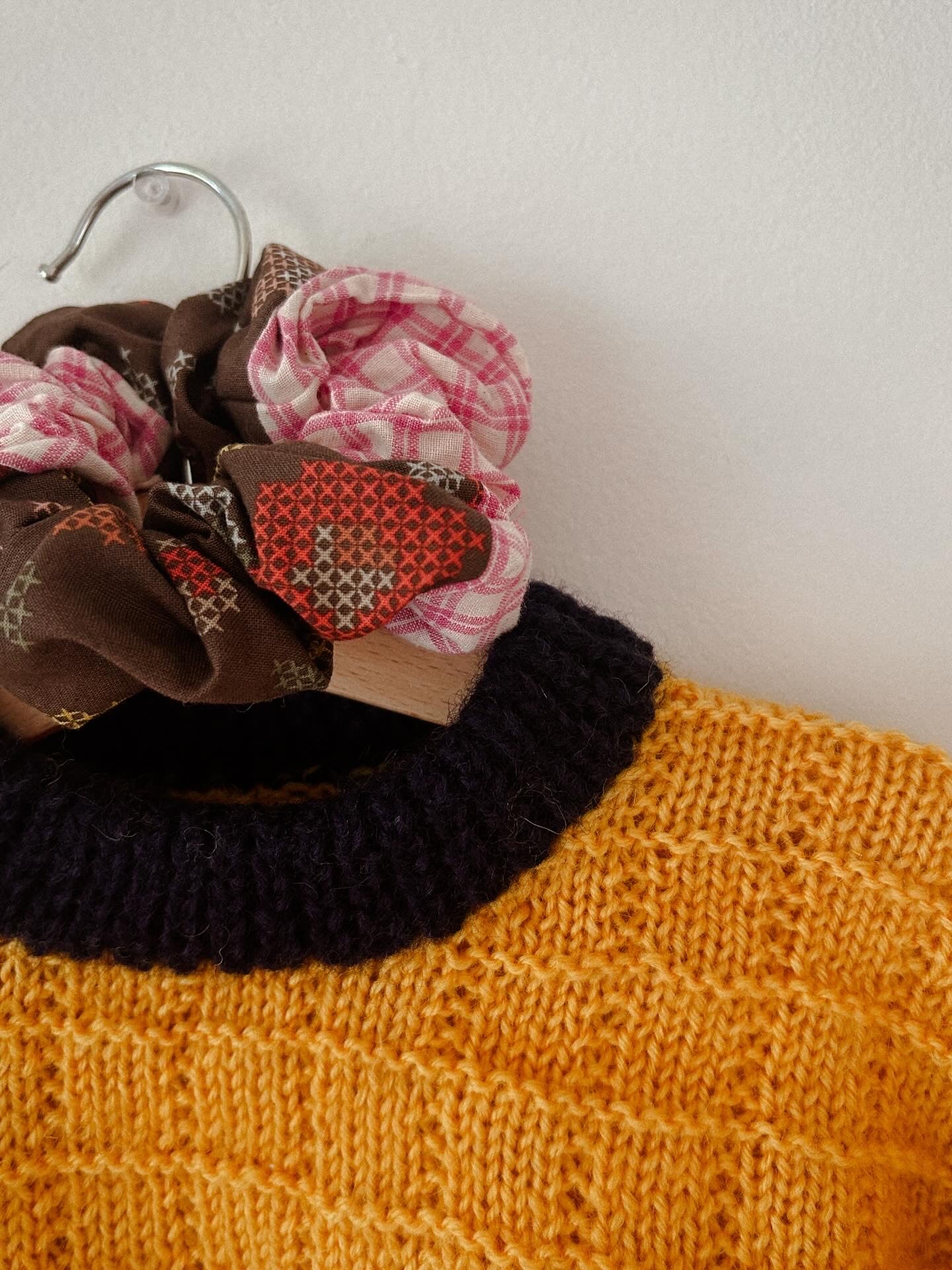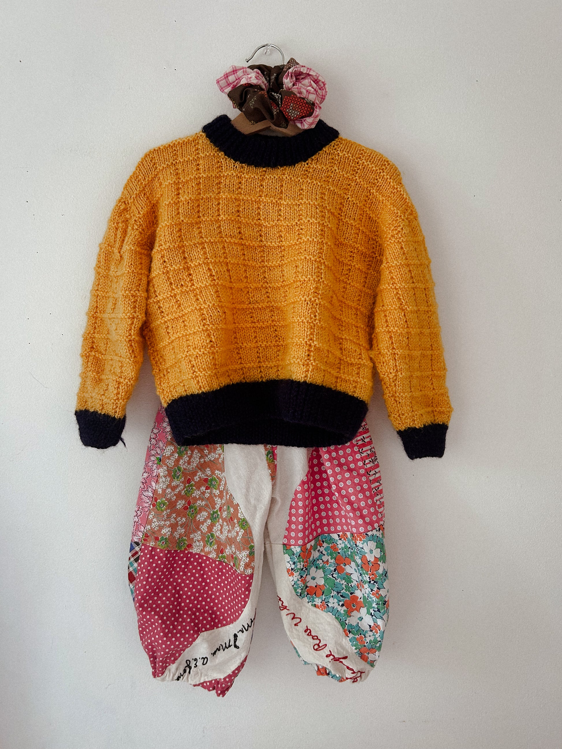 Handmade crewneck. Beautiful craftsmanship and classic gold and navy.