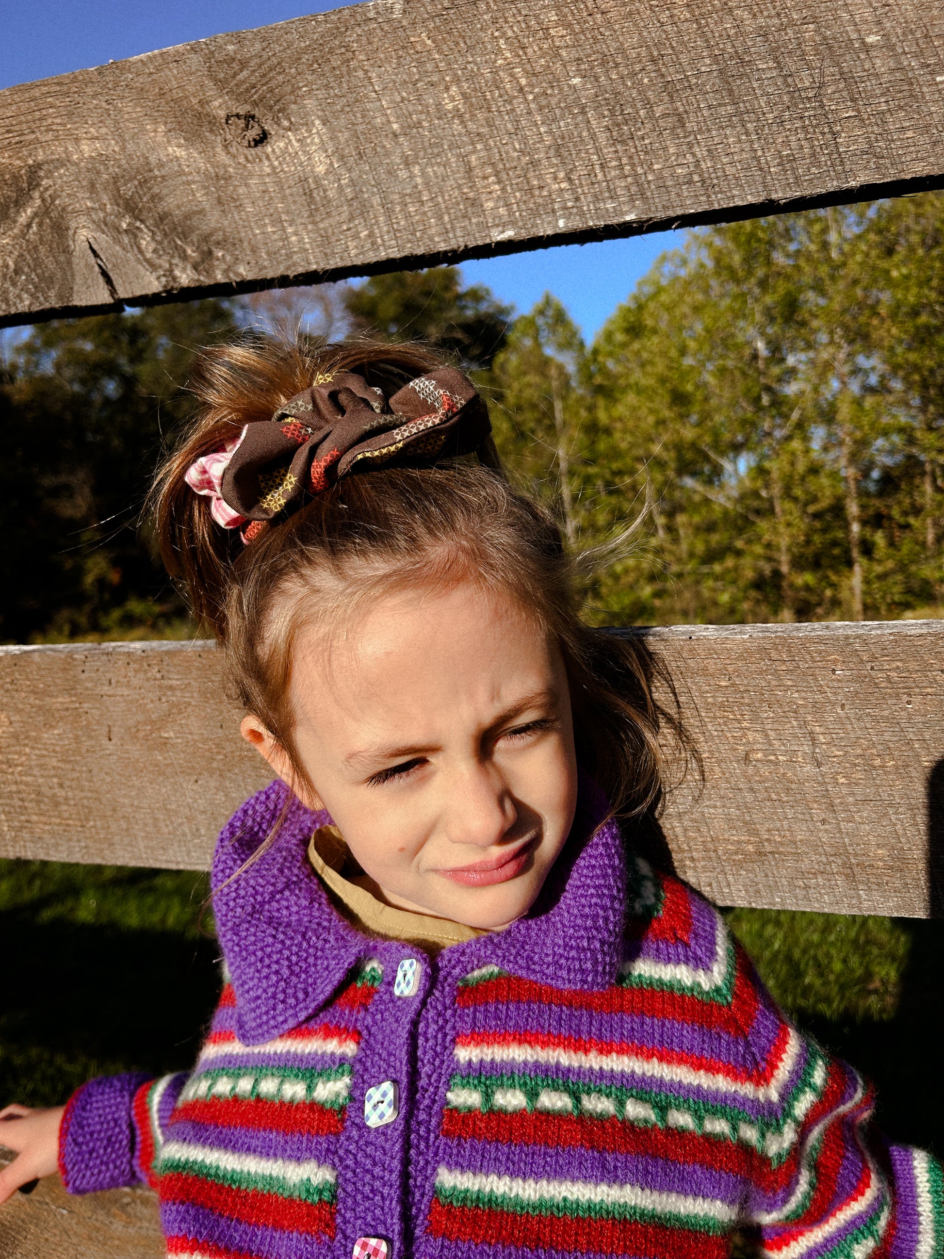 Hand Made Striped Cardigan. Wool/acrylic blend. Freshly cleaned and ready for your little to wear on the daily or for that special occasion. Featuring gingham buttons!