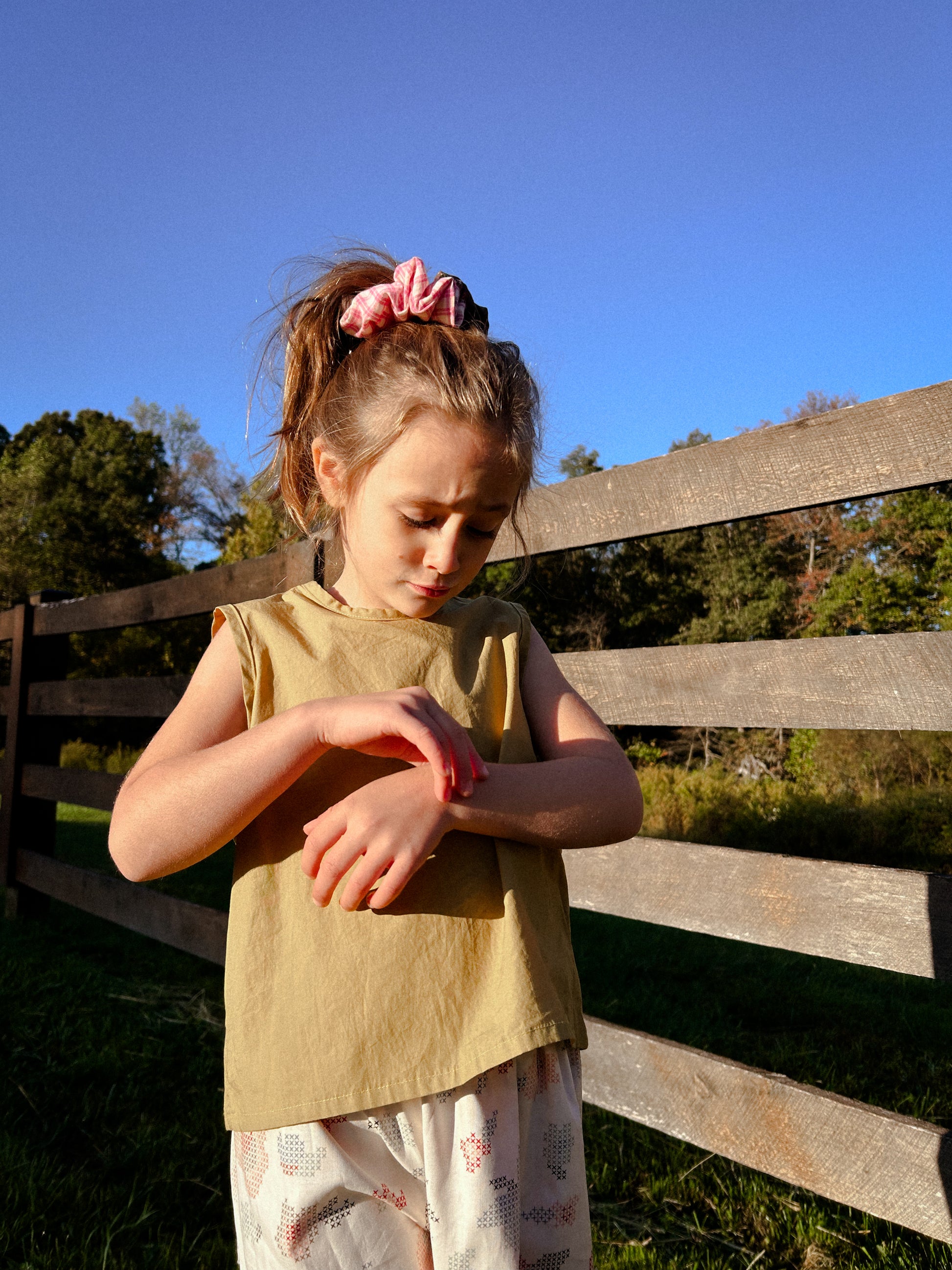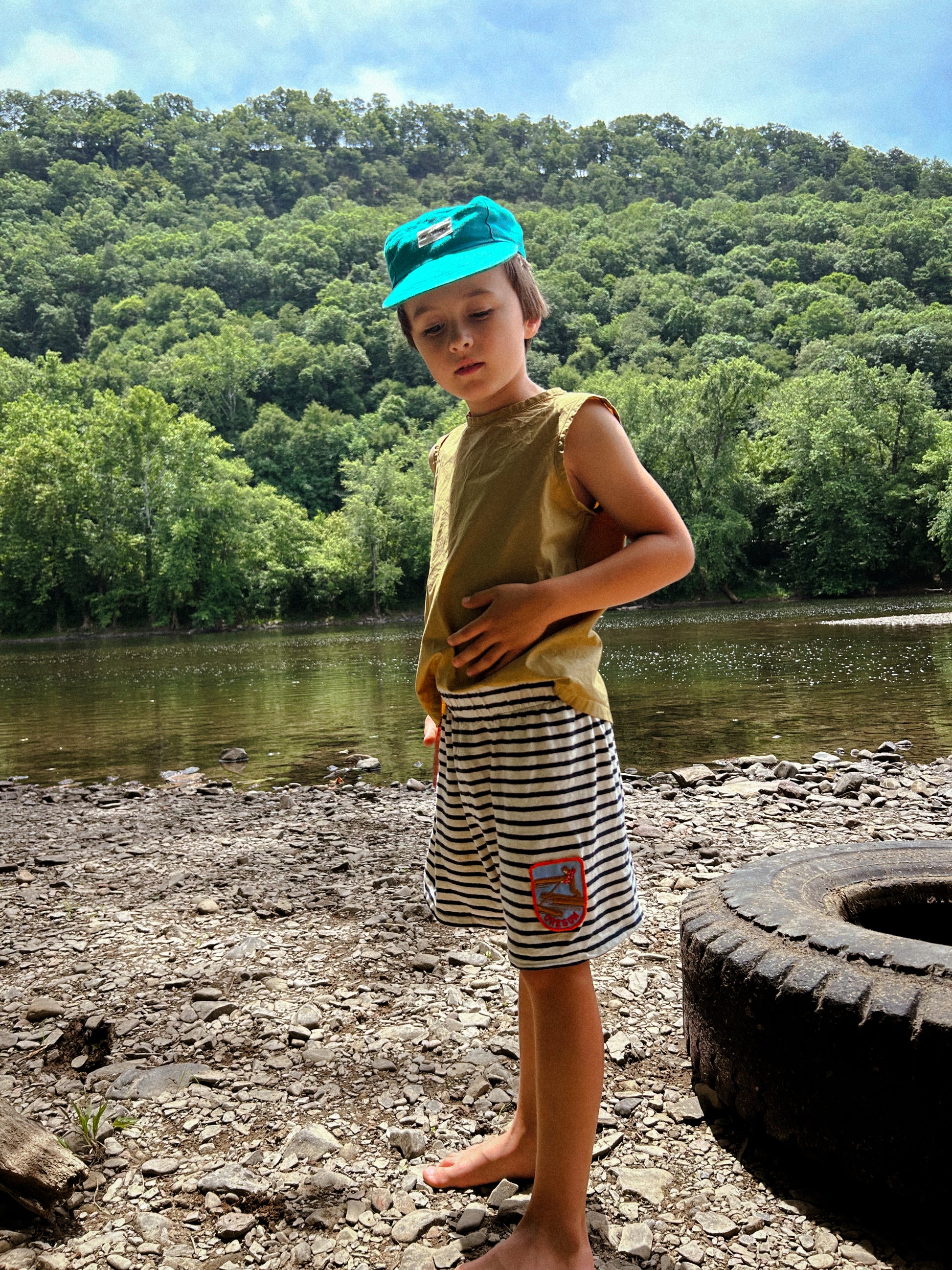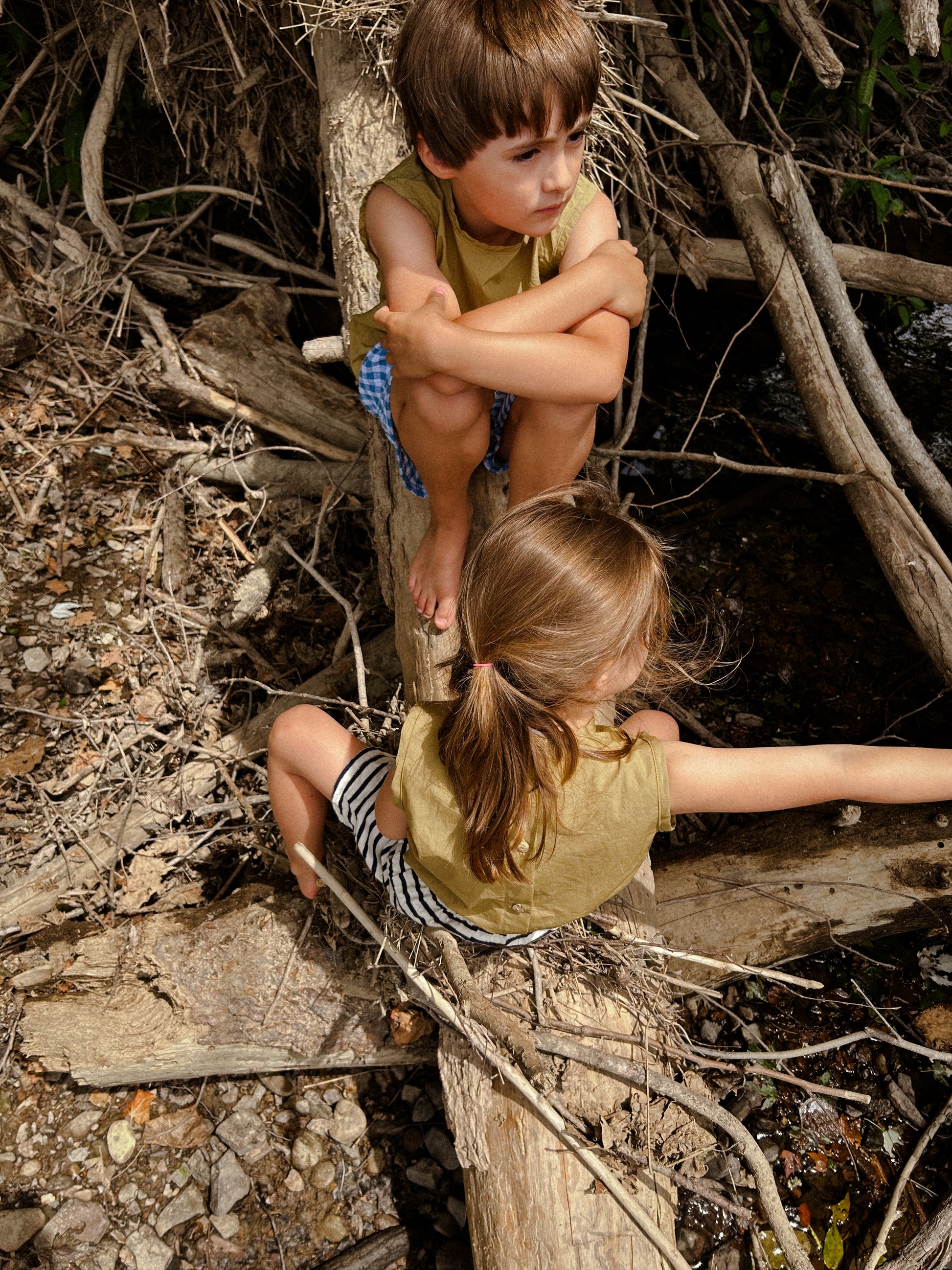 The Meadow Tank in Pond features natural shell closures down the back. Cut from cotton poplin the Meadow tank is lightweight and airy but holds a crisp beautiful shape. We recommend wearing with any of our bottoms or your favorite vintage or bike short. Gender neutral by design this piece looks beautiful both tucked or untucked.