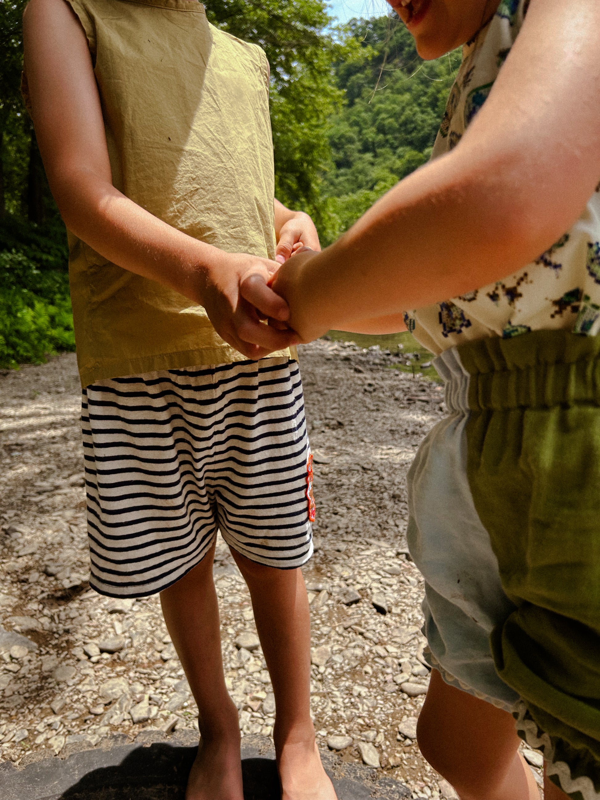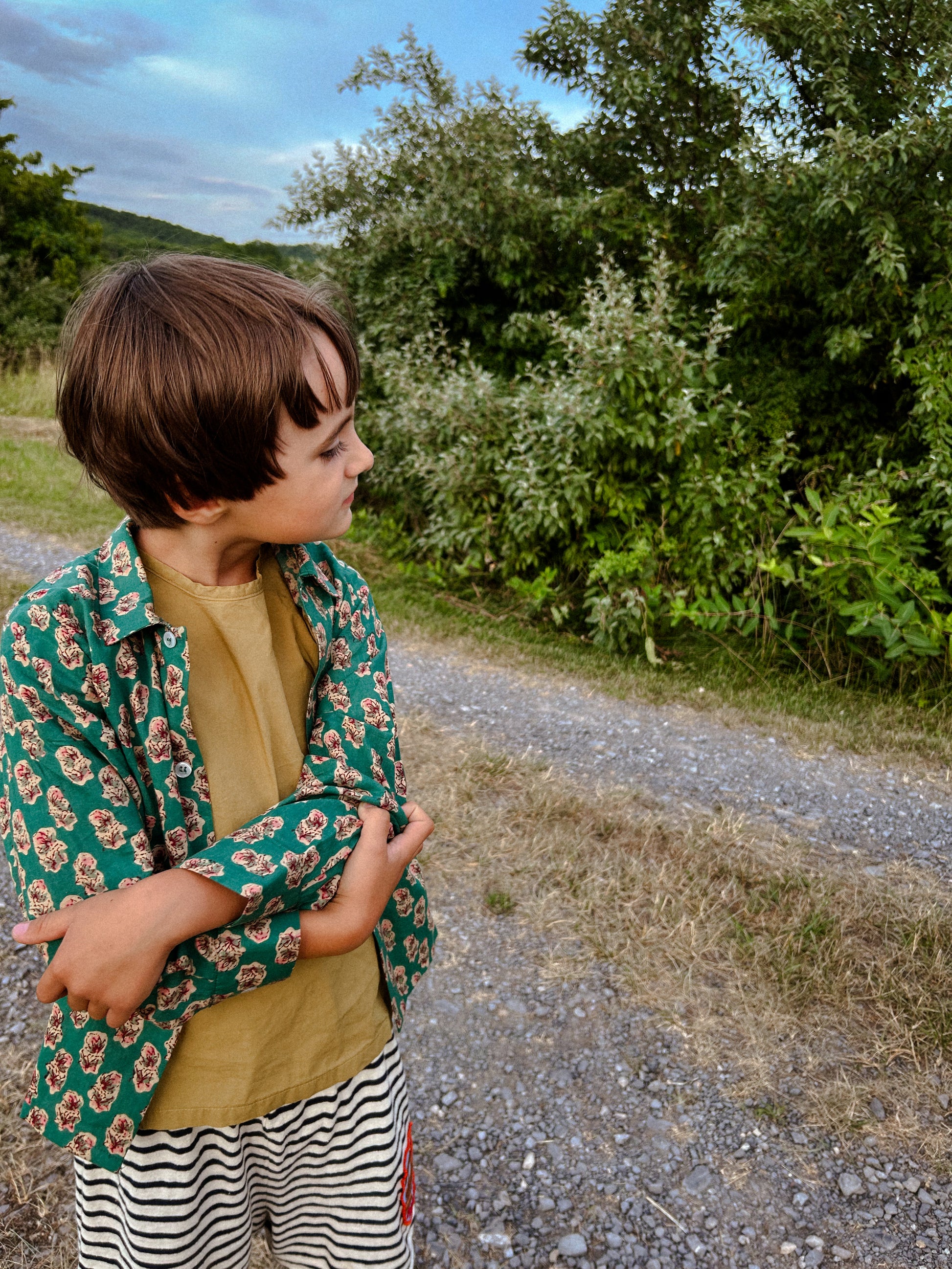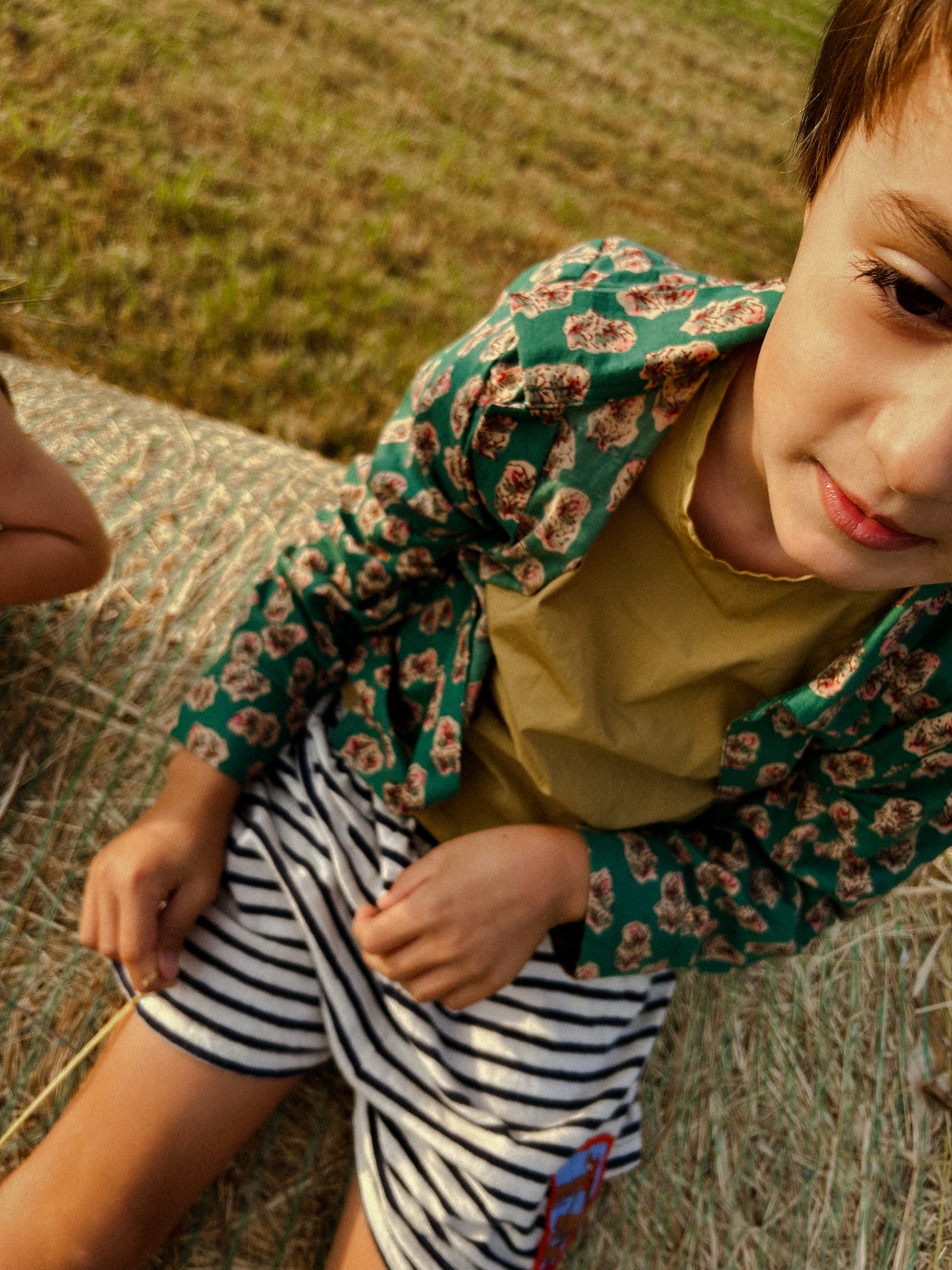 The Meadow Tank in Pond features natural shell closures down the back. Cut from cotton poplin the Meadow tank is lightweight and airy but holds a crisp beautiful shape. We recommend wearing with any of our bottoms or your favorite vintage or bike short. Gender neutral by design this piece looks beautiful both tucked or untucked.