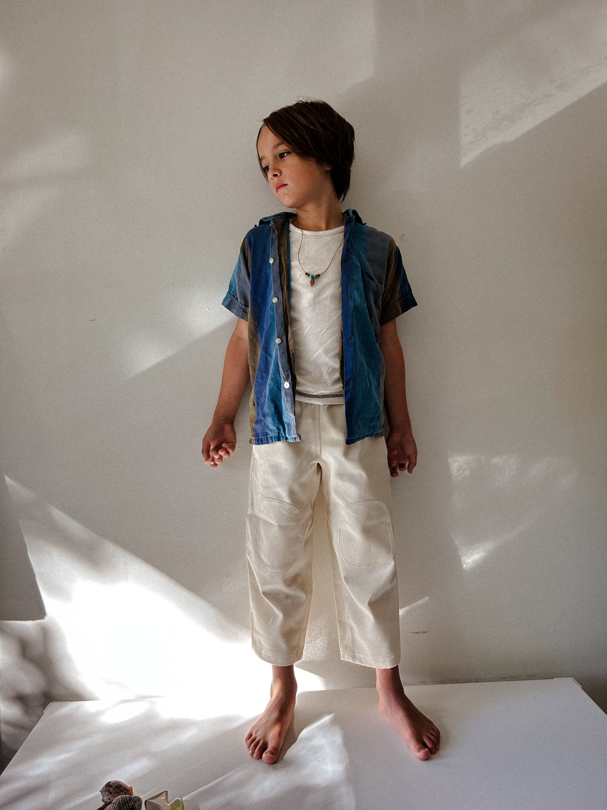Designed to accompany your little one on their daily adventures, whether it’s a last-minute grocery run or an ascent to the tallest peaks. The Mountain Pant aims to harness energy from great explorers with its rugged yet classic cut. Inspired by vintage climbing pants, the Mountain Pant features an elastic waistband with a drawstring for easy adjustment, a gusset, and knee patches for added durability. Deep side pockets are perfect for treasures found along the way, and a back snap pocket keeps other adventure essentials secure. Made for big movements, these pants are ready to support your little one as they build their story.