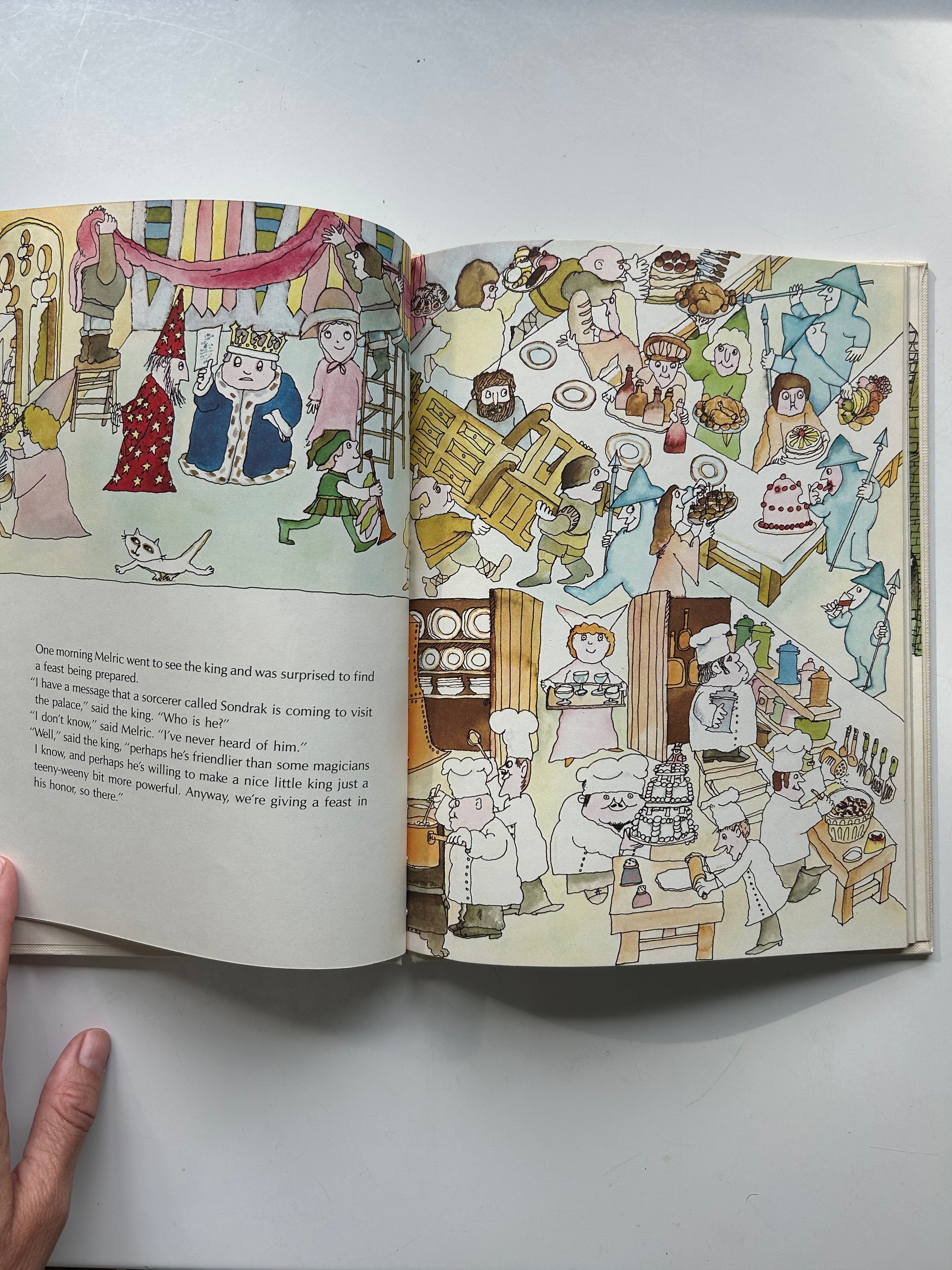 The King seeks more power, but his good magician rejects his demands. The evil sorcerer arrives pretending to accede to the King's wishes, but really seeking power for himself. The magician overcomes the sorcerer through the power of laughter. Great illustrations!