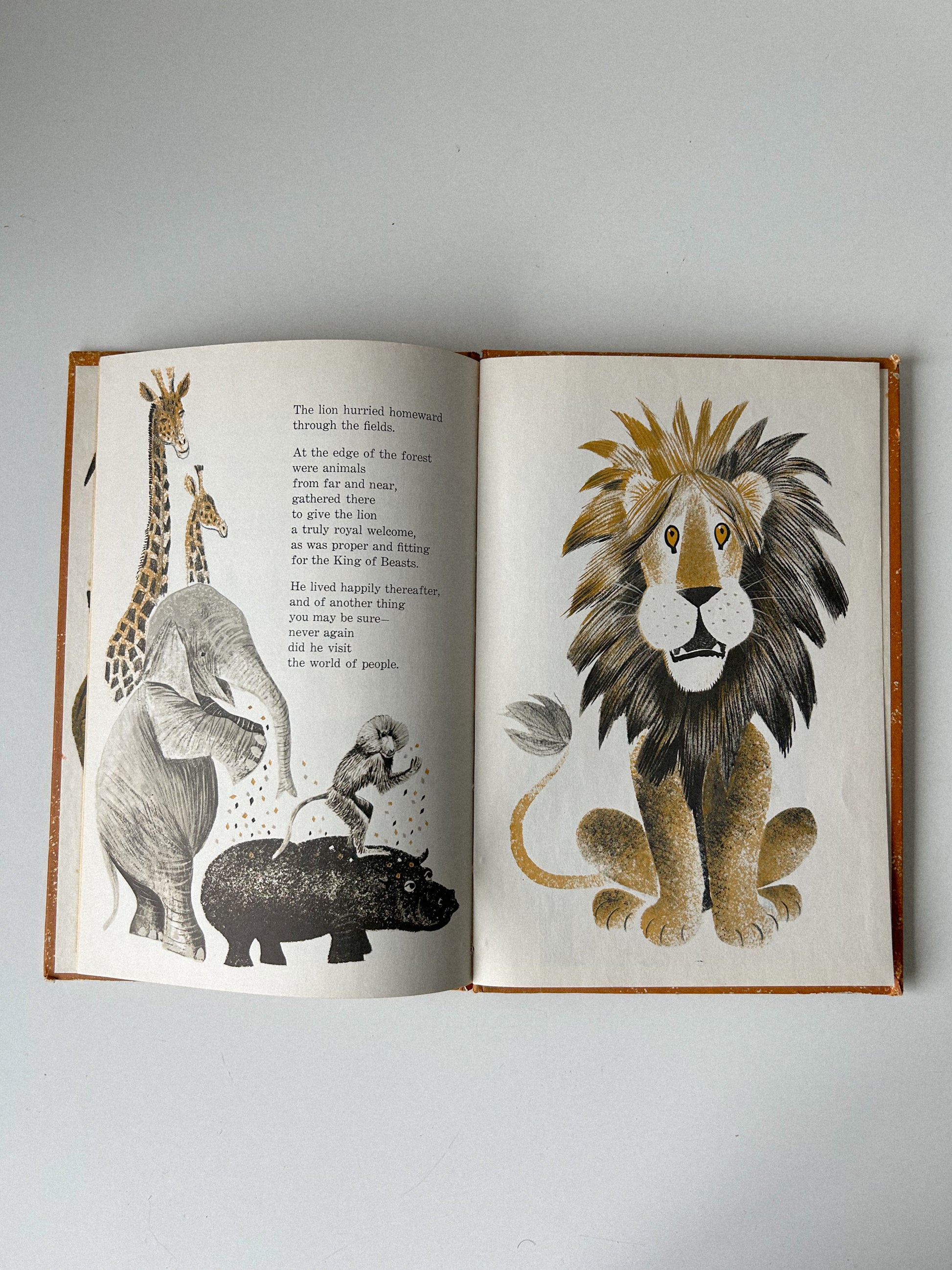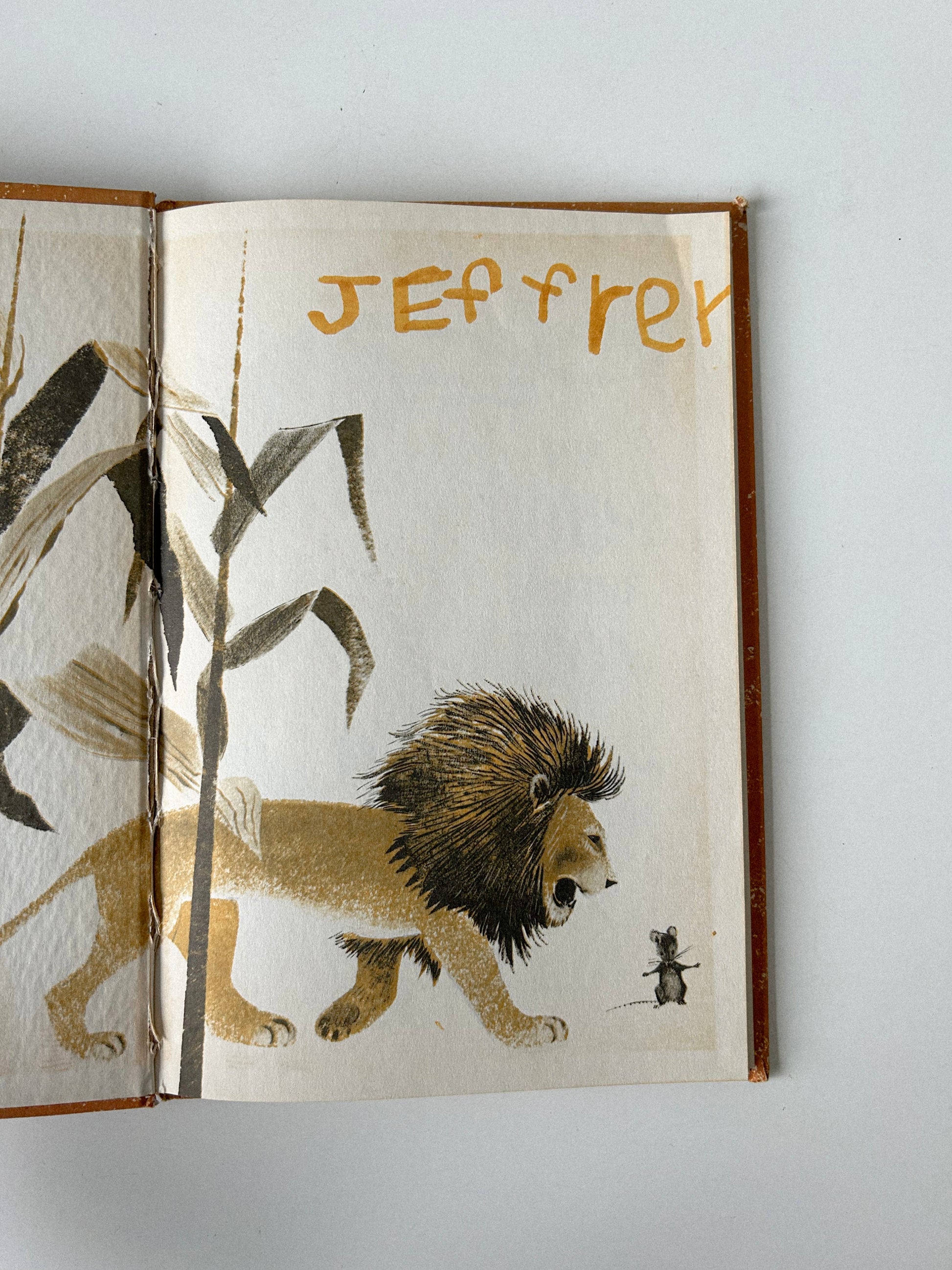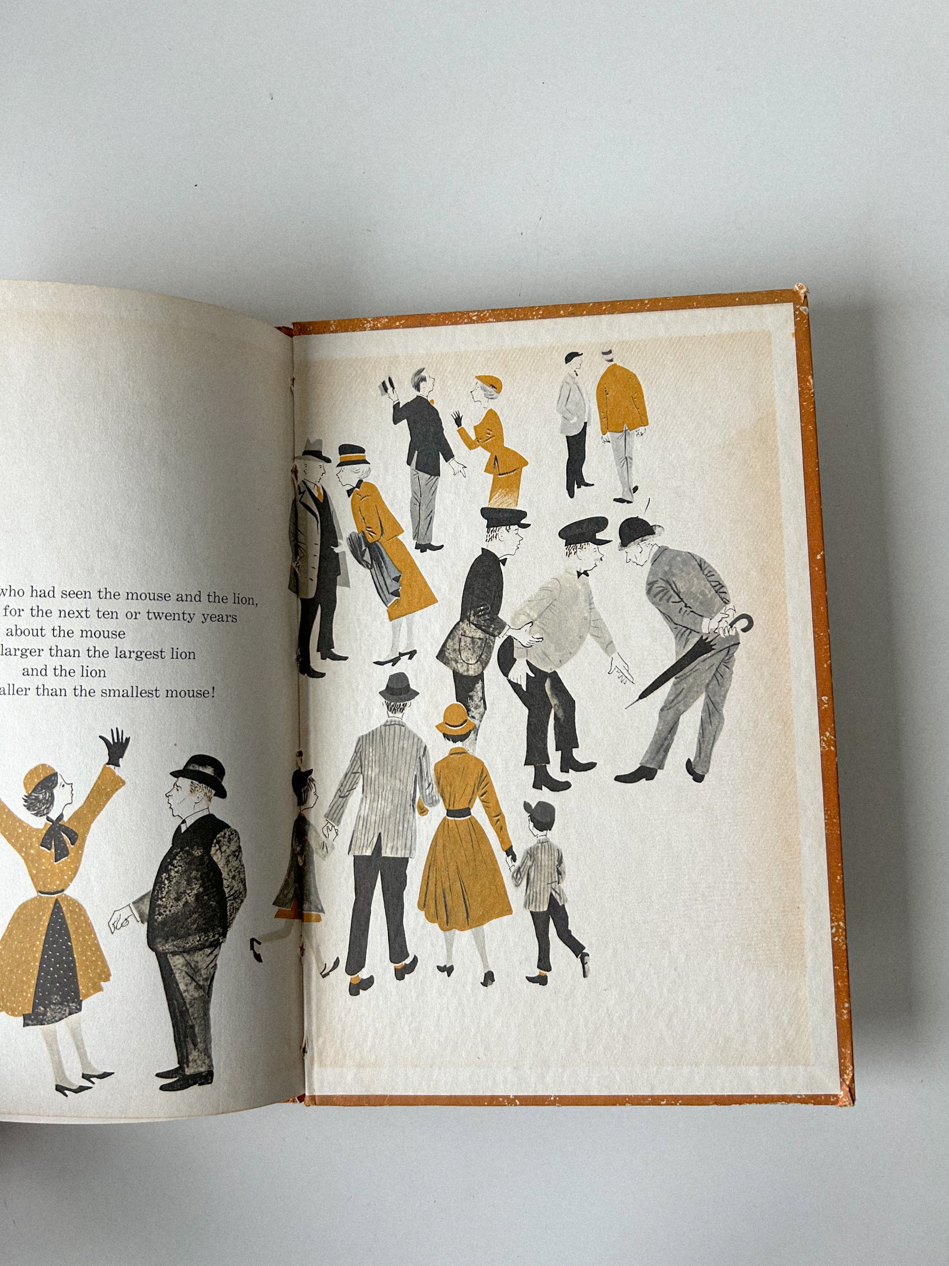 The mouse and the lion had set out to visit the world of people, when a fairy, feeling sorry for the mouse, made him appear larger than the largest lion to those who viewed him. The stage is set.