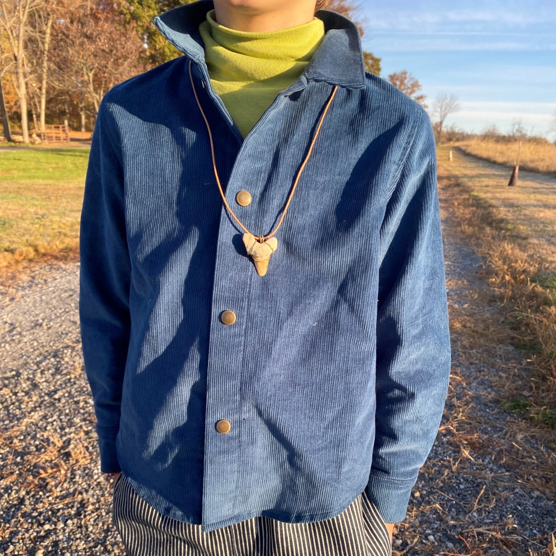 You choose made with assorted trading beads, fossil + trading beads, or a fossilized shark tooth . Strung on a leather cord. Each one is unique adding the perfect amount of eccentricity to your little ones daily get up.