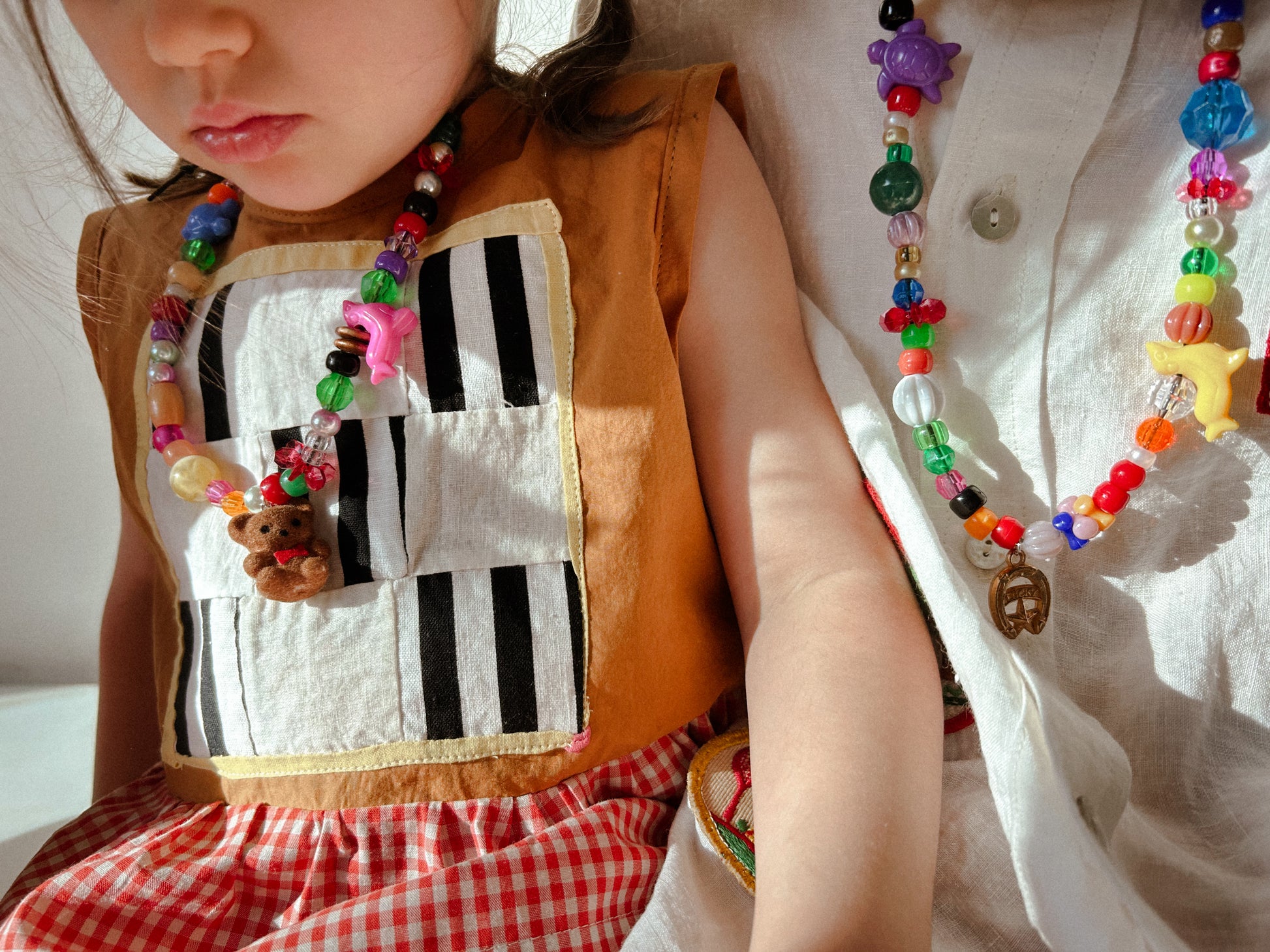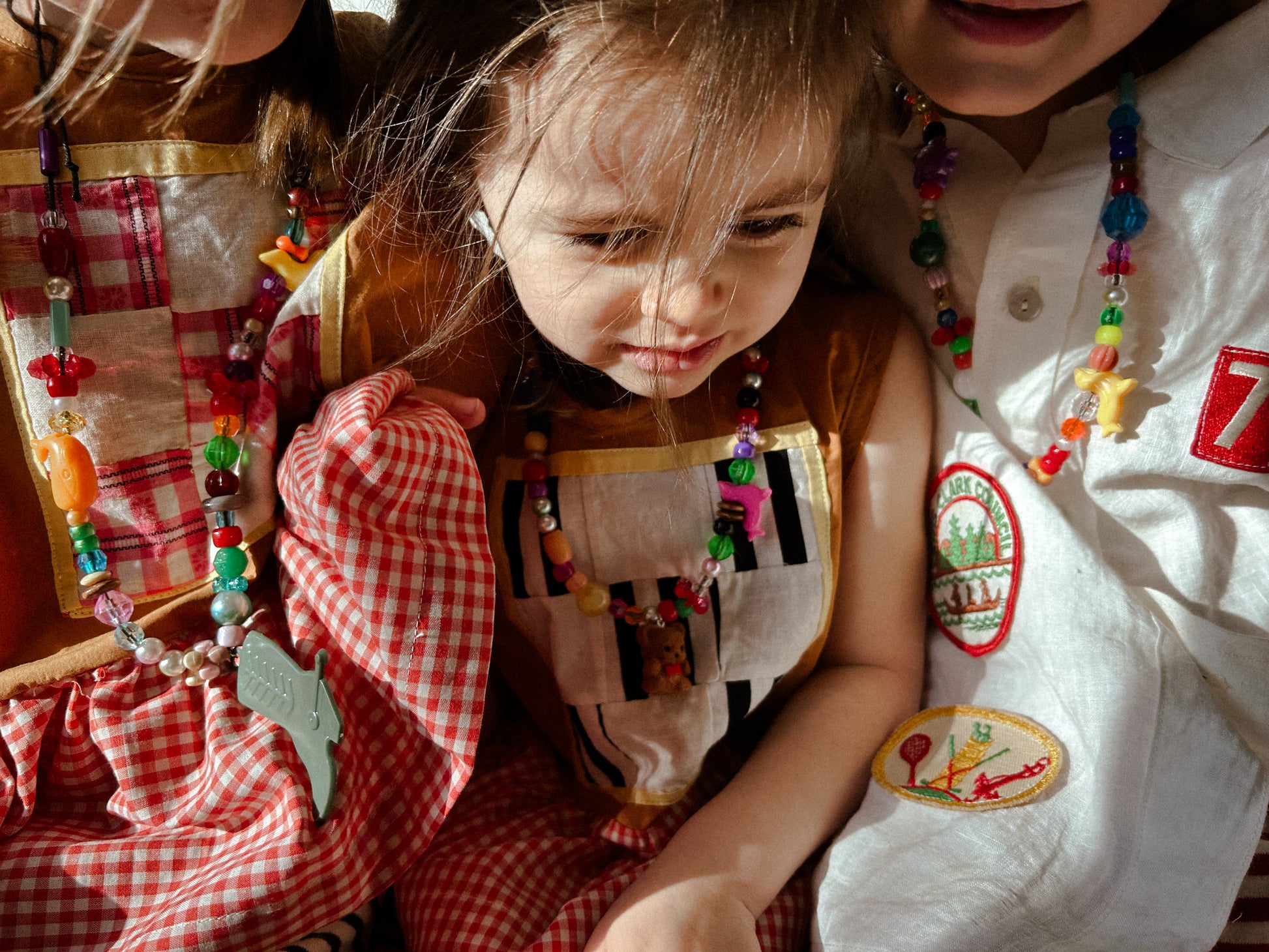 Vintage Charm Necklaces Made by Sandw1tch Shop with vintage charms and beads on an adjustable lace. The perfect small treasure that adds color and spunk to any outfit and makes for a perfect party gift!