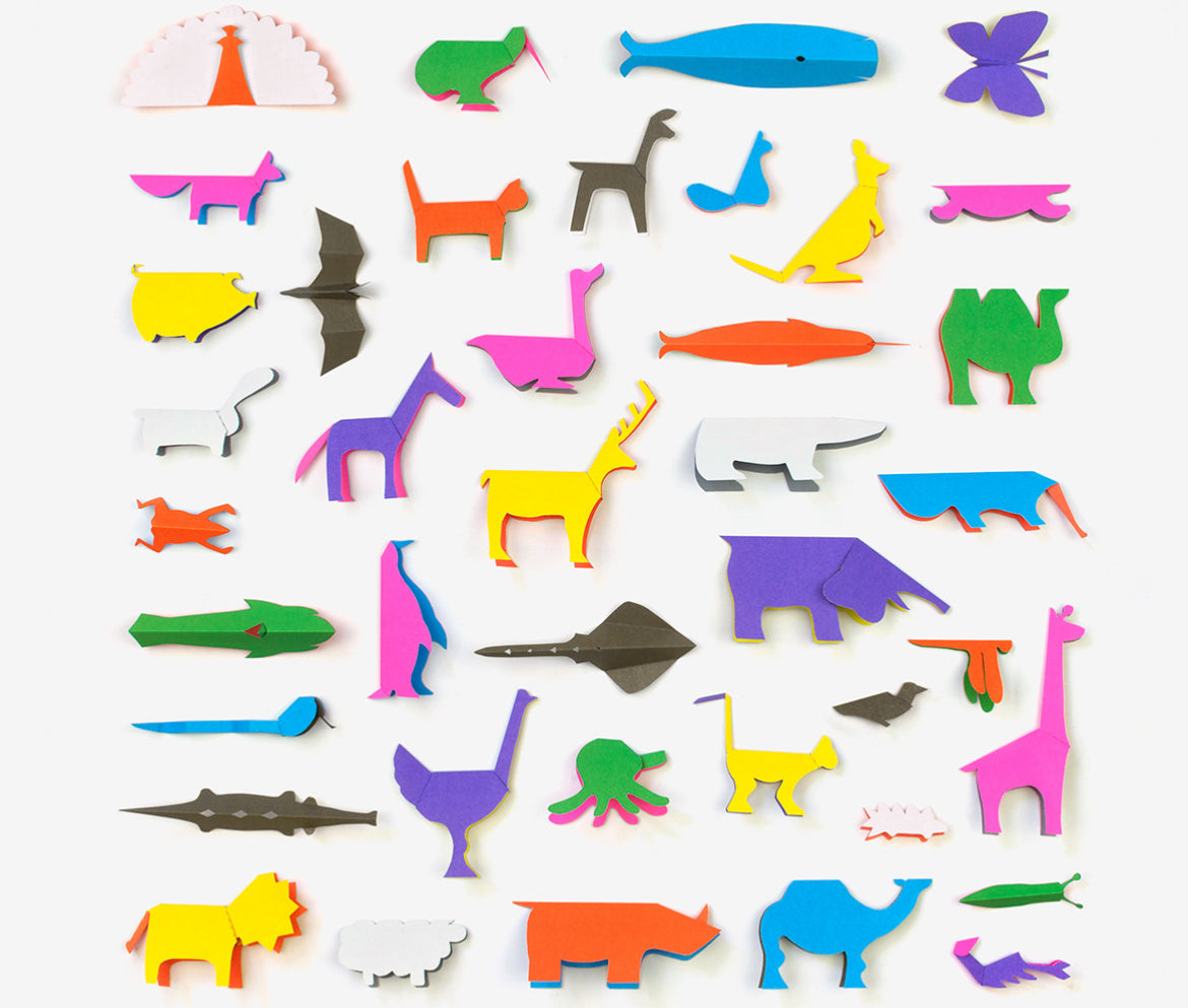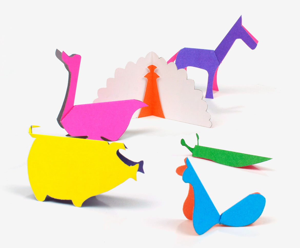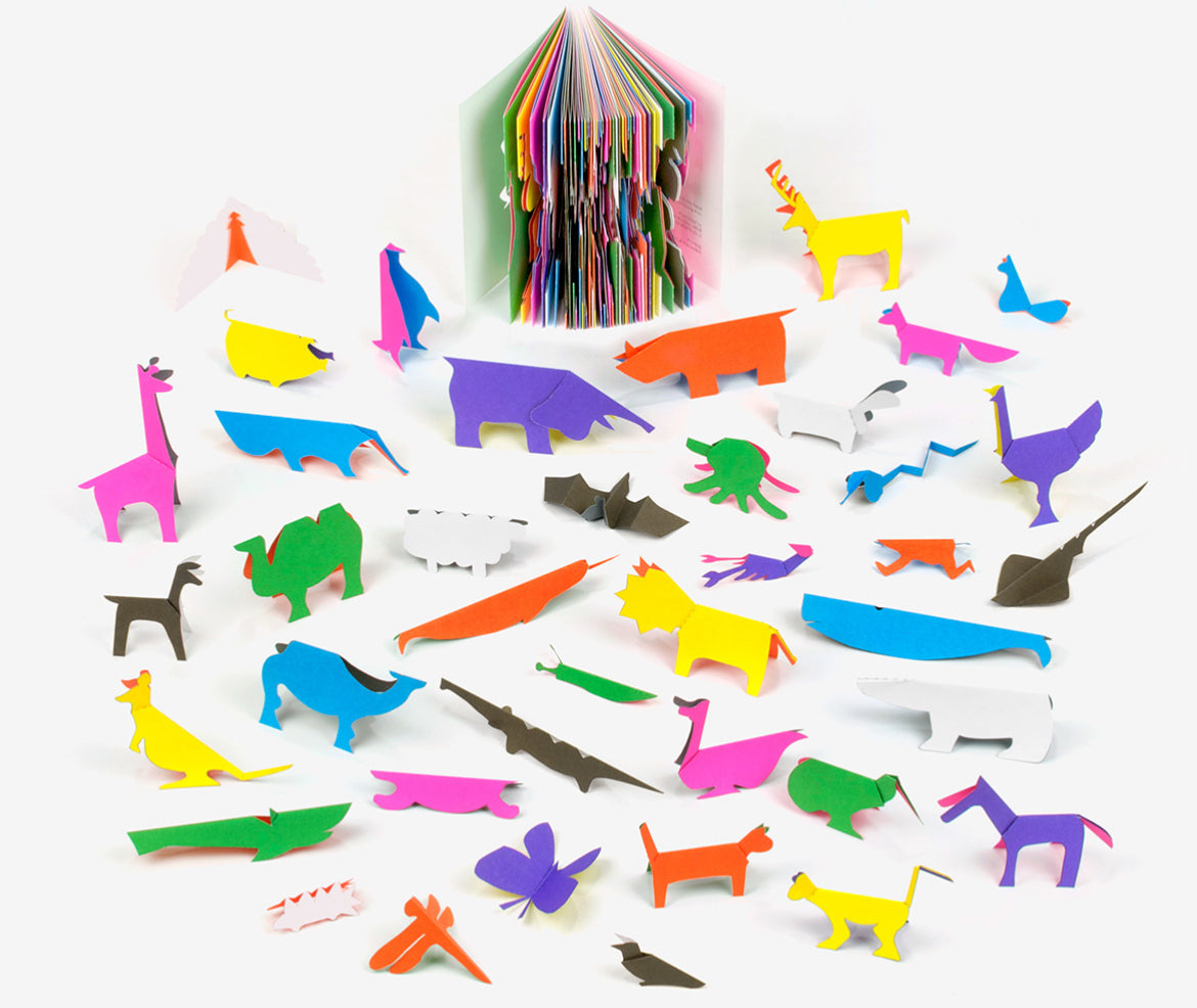 Zoo in my hand is an activity book that allows you to create 40 stylized origami animals. Cut, then fold once or twice: the two dimensional paper becomes a three dimensional creature. Lion, peacock, monkey, pig, whale, rhinoceros… a colorful menagerie appears before your eyes. An exquisite paper zoo, all for you!